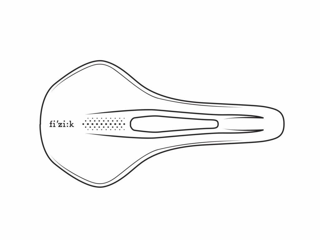 Fig. 2: Fizik Vento Antares performance saddle featuring central pressure-eliminating open split, flat rear platform and thin, dense padding