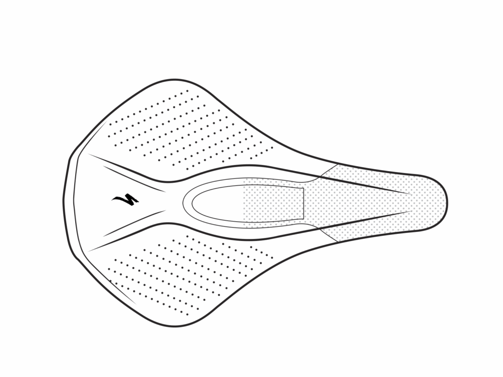 Fig. 3: Specialized Power Arc saddle with soft, stretchy MIMIC feature in the depression in the saddle nose