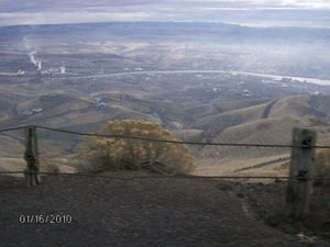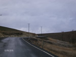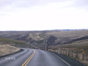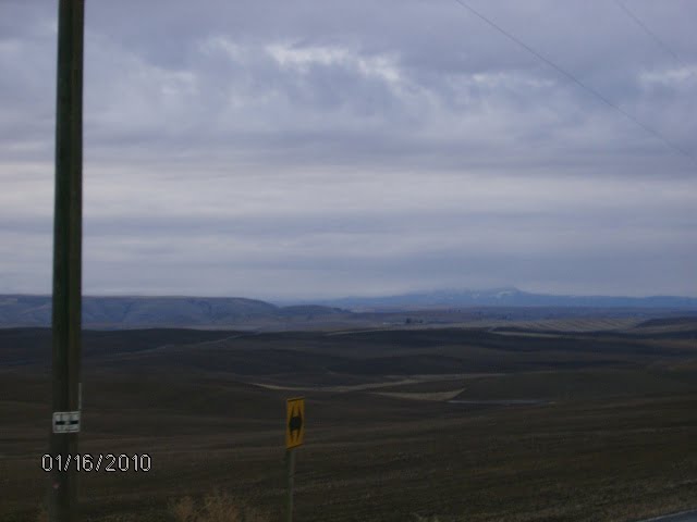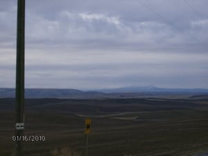 The foothills of the Palouse (Pronounced Pa-loose) on the left with the Moscow (Moss-co) Mountains in the distance on the right.