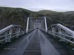 Cherry Lane Bridge, a one-laner crossing the Clearwater river off Highway 12