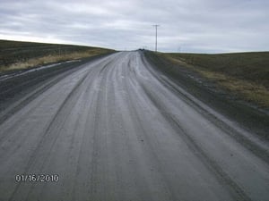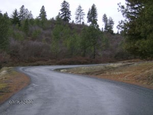 A long, straight and slightly damp road just over the top of Tammany Creek.