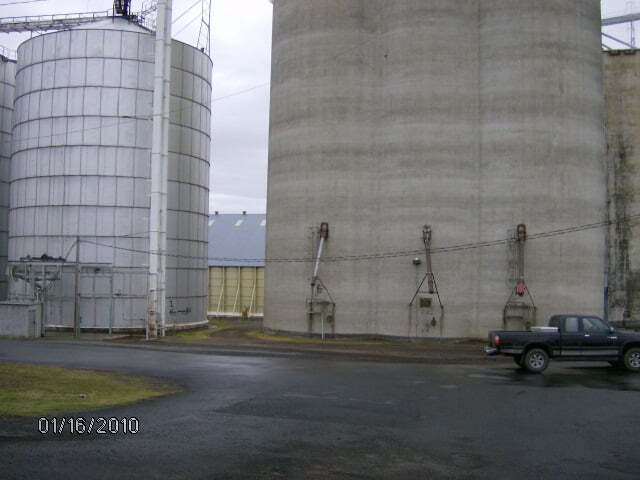 More grain elevators, each one of the three on the right is about 25 ft in diameter and 200 feet tall so they don't fit in the picture.